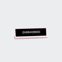 - Inscription "Overworked" gravée sur fond noir et bordure rose