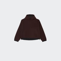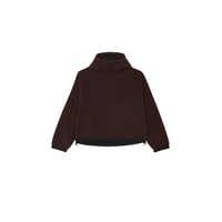 Oversized loose fit, brushed, snorkel hood, contrast nylon details, side pockets, zip closure, adjustable hem, graphic embroidery