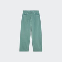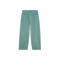 Loose straight fit, low crotch, contrast stitching, back yoke, bartack stitching at vital stress points, square label, zip fly.