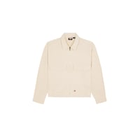- Crafted from lightly peached, garment-dyed 8.3OZ cotton twill, it features low-placed patch pockets with a pencil division, forward shoulder seam, adjustable waist, adjustable cuffs, hidden center front zipper, integrated elbow patch, and the iconic woven Dickies label above the hem.