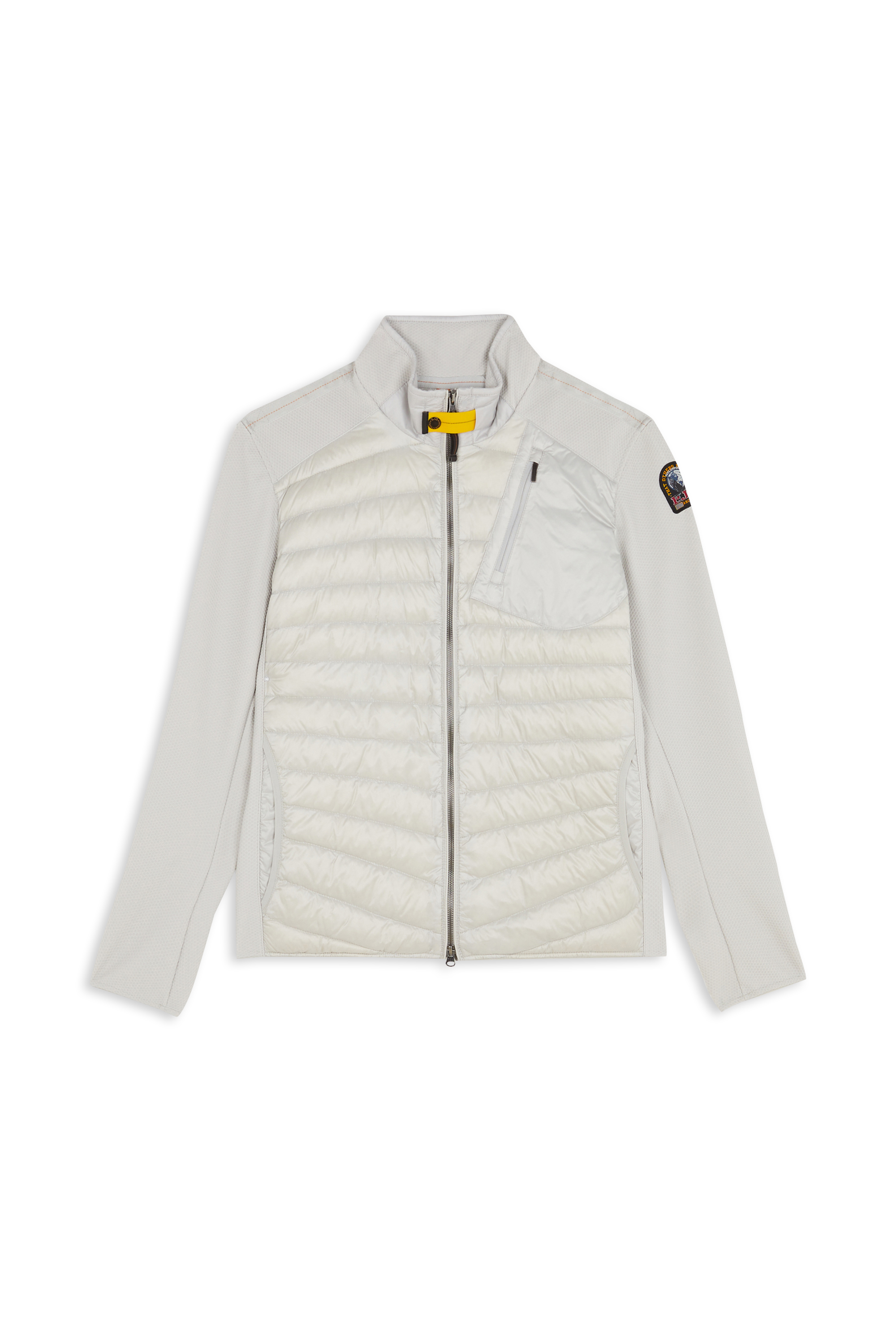 Jayden is a hybrid jacket from the iconic Warm Up series, combining a stretch polyester honeycomb knit with a down-filled semi-shiny nylon taffeta.