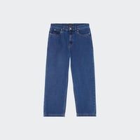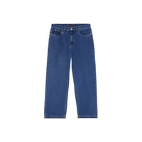 94% cotton, 6% polyester, 13.5oz denim, baggy fit jeans with front pockets, back pockets, and woven label branding. Size 34, Inseam - 30" / Leg Opening - 9 1/8".