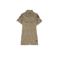 Dare to embrace a bold army style with this lightweight and badge-adorned playsuit.